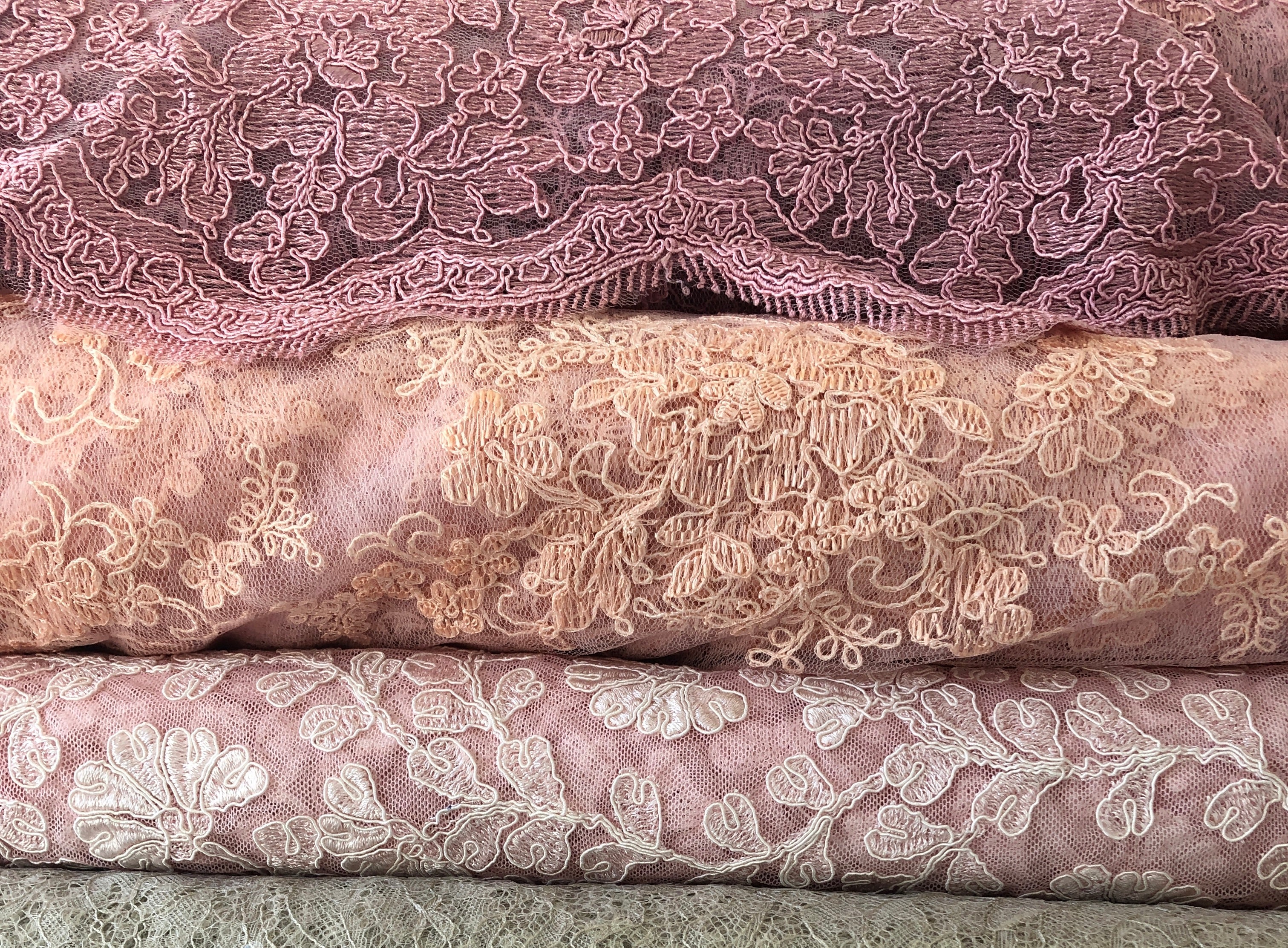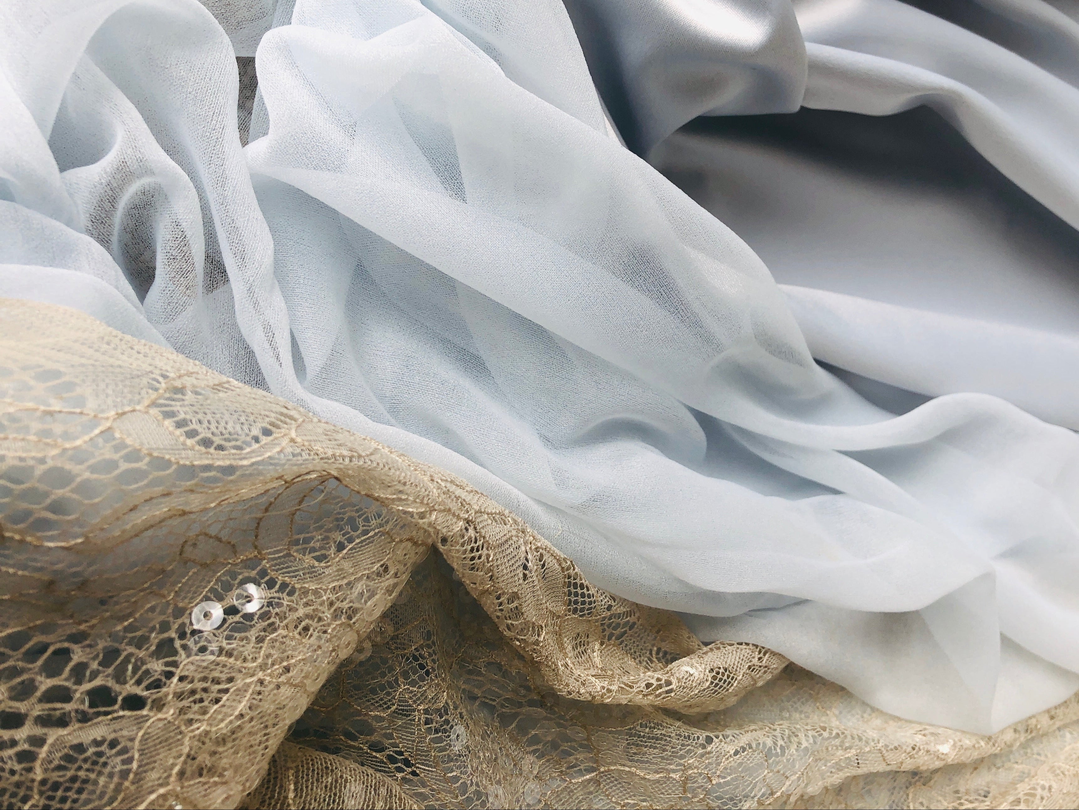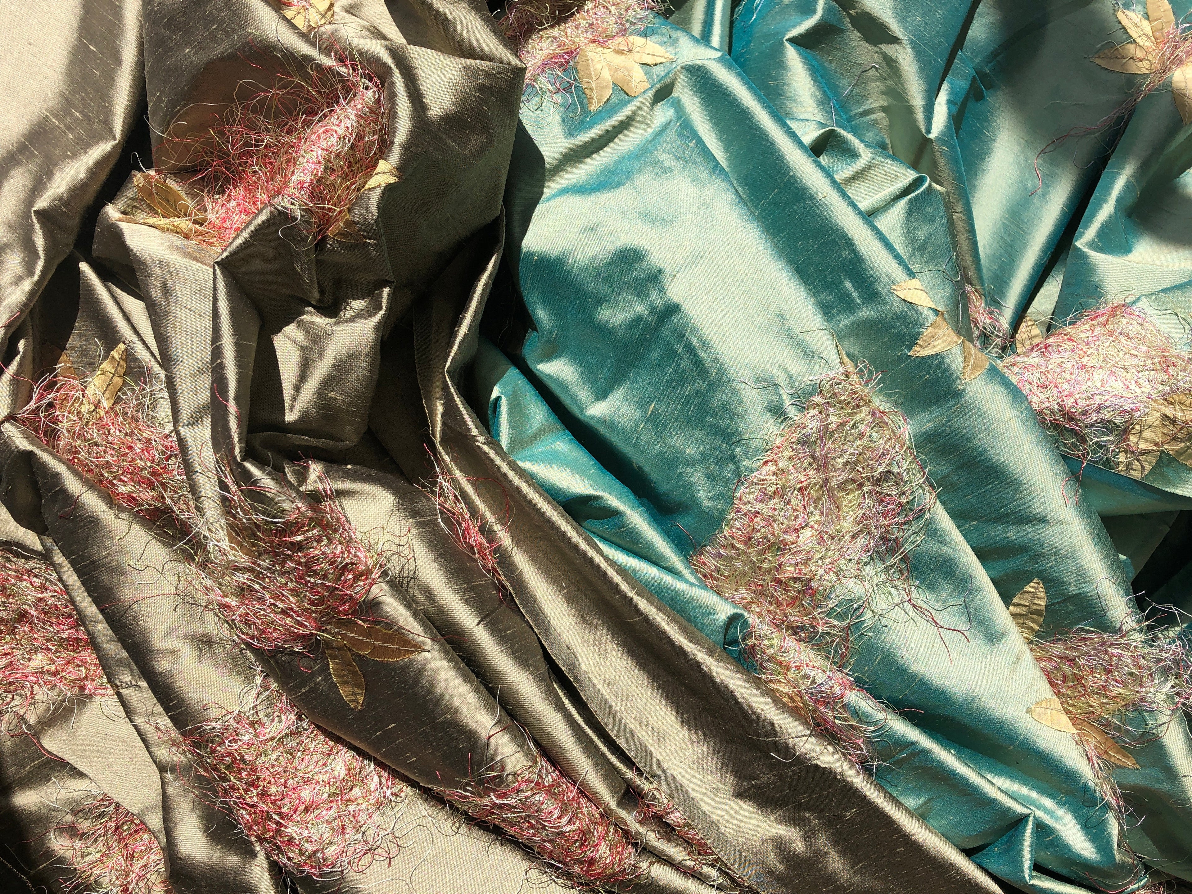 We house a beautiful collection of fabric remnants and embellishments made of silks, embroideries, pleatings, and jacquards from all over the world.