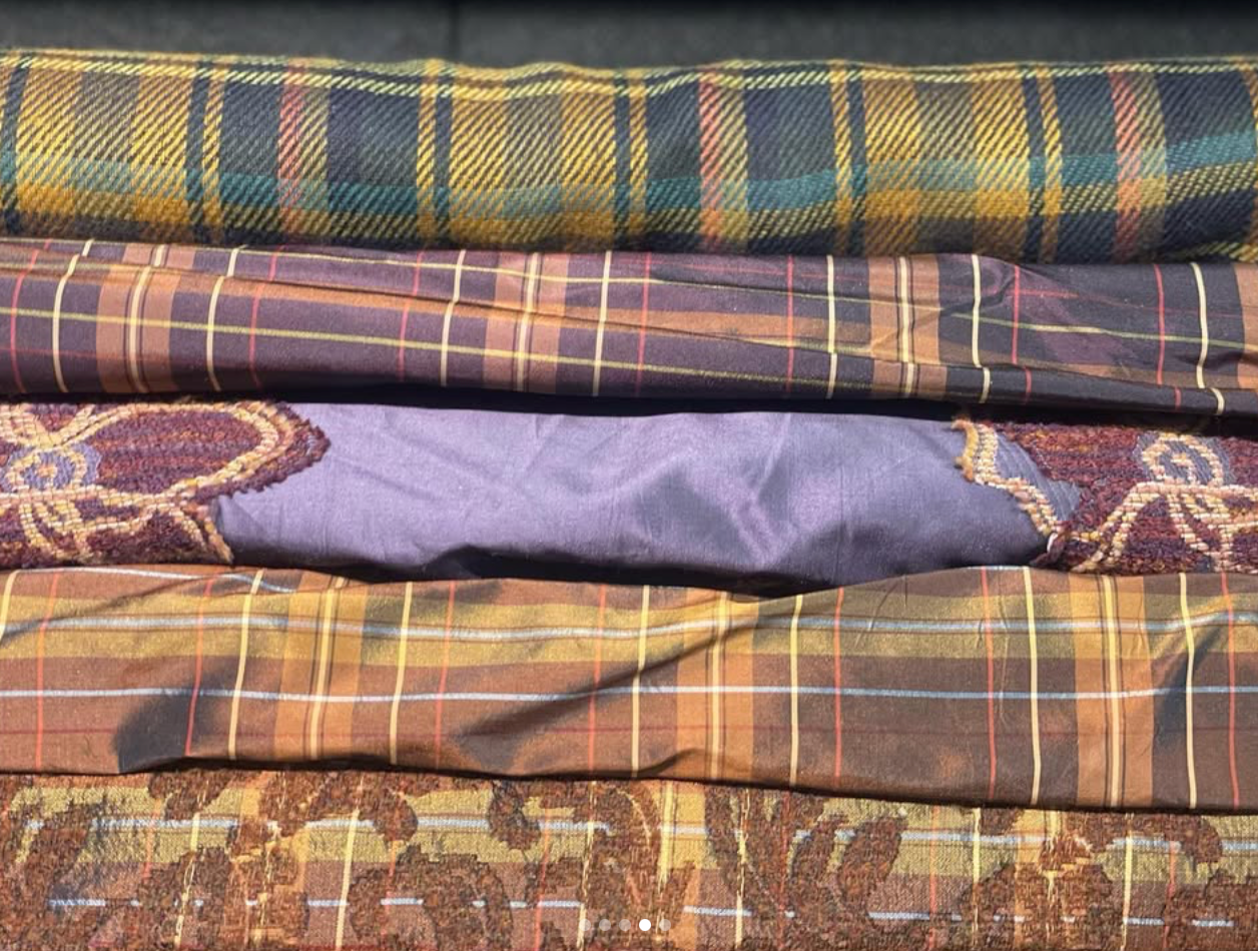 Based in Glasgow, part of our store is an extensive selection of tartan printed on rich dupions and other textiles. Our tartan remnants are perfect for small or medium crafting projects.